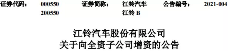 近日,江铃汽车发布关于向全资子公司增资的公告,拟对全资子公司江铃重型汽车有限公司以现金增资人民币11.42亿元。