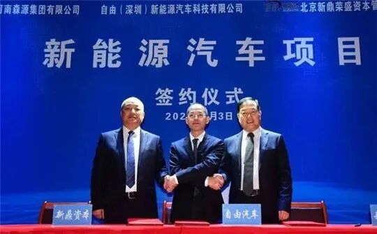 2021年2月3日,前广汽蔚来CEO廖兵表示,创立自由(深圳)新能源科技有限公司,推出新能源汽车品牌——自由汽车。同时,河南森源集团有限公司、自由(深圳)新能源汽车科技有限公司与北京新鼎荣盛资本管理有限公司就新能源汽车项目举行签约仪式,正式达成合作。