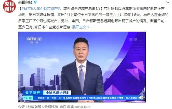 I 日本5大车企缺芯减产 或将占全球减产总量1/3