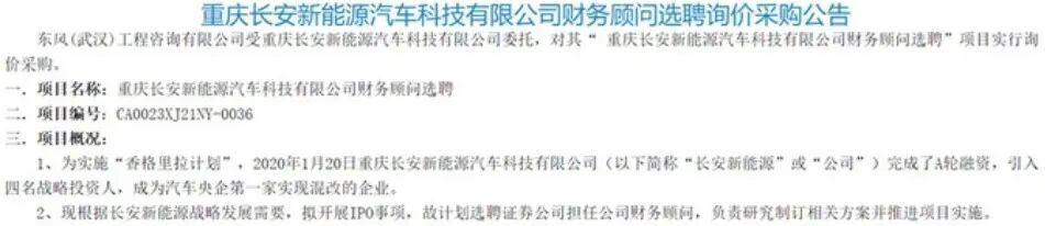 日前,从相关渠道获悉,长安新能源将启动B轮融资,金额为30亿元。同时,长安新能源已经开始选聘证券公司担任公司财务顾问,拟开展IPO事项。