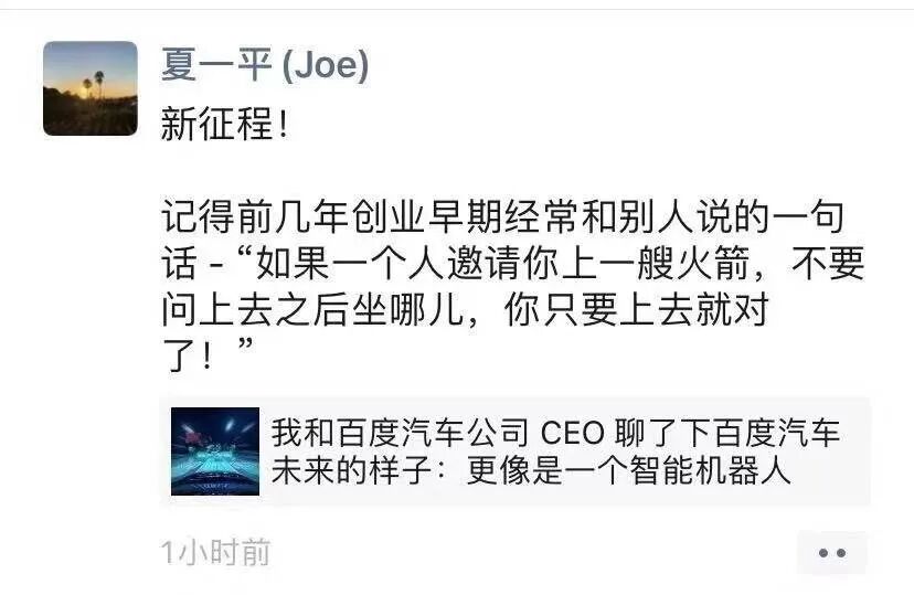 I 百度证实前摩拜联合创始人夏一平出任百度造车公司CEO