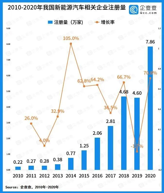I 2020年新能源车相关企业注册量达7.86万家 同比增长70.8%