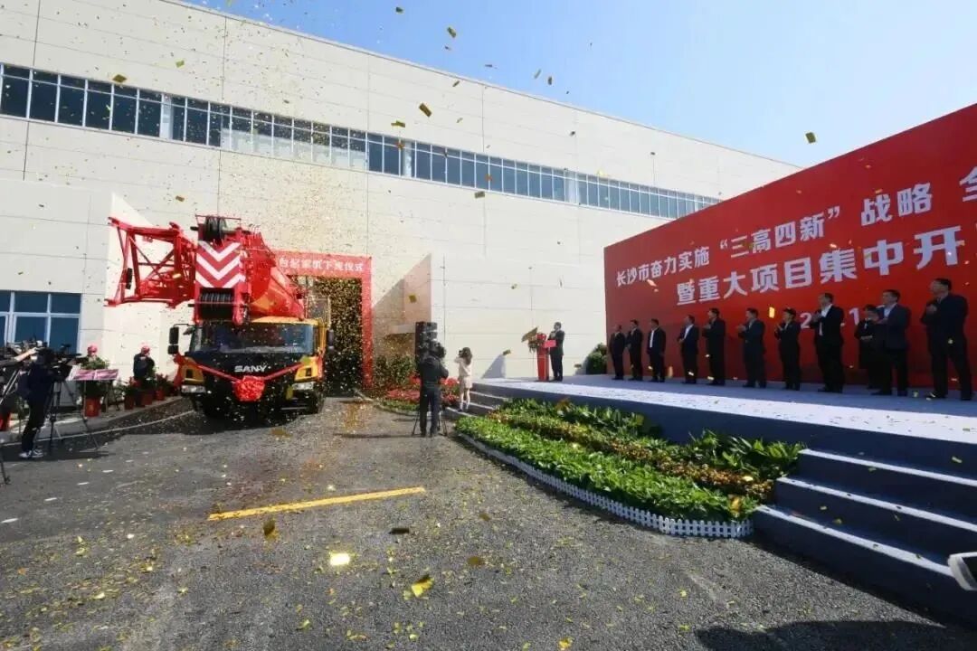 近日,三一中型起重机械智能制造工厂竣工投产仪式、三一重起驾驶室及操作室项目开工仪式在长沙宁乡高新区举行。作为长沙实施“三高四新”战略的标志性重大项目,三一中起项目在当天迎来了竣工投产。在现场嘉宾的见证下,第一台130吨全地面起重机从其生产车间缓缓驶出。