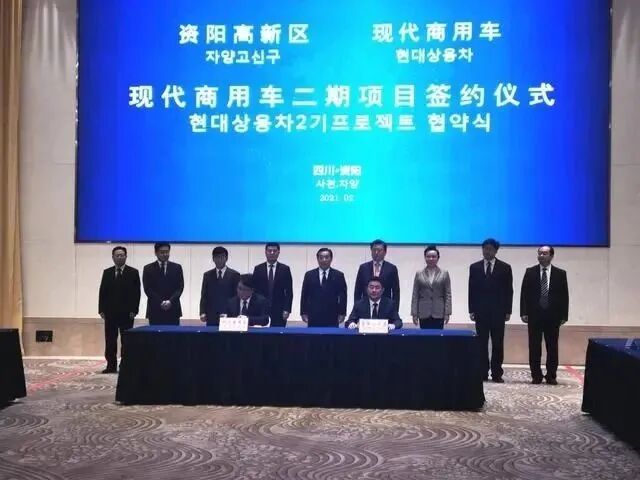 2月24日,投资22.3亿元的现代商用车二期项目签约仪式在资阳举行。该项目由现代商用车公司投资22.3亿元建设,重点强化氢燃料汽车在内的新能源汽车产品的研发和生产。