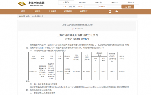 3月1日,上海市土地交易市场官网挂出一则土地出让公告,信息显示该地块总占地面积461,142.40平方米,位于自贸区临港重装备产业区,准入产业类型为新能源车整车制造,投资强度不低于14,925元/每平方米。有消息称,这将是继2月初特斯拉上海超级充电桩工厂落成投产后,特斯拉上海超级工厂再度扩建。